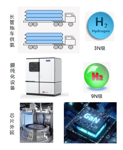 創(chuàng)新:在PEM/ALK/AEM電解水制氫、甲醇重整制氫和氨裂解制氫系統(tǒng)中,采用膜純化取代變壓吸附PSA和變溫吸附TSA,實現(xiàn)了整體設(shè)備的小型化、輕量化、撬裝化,而且氫氣純度達(dá)到99.99999+%
